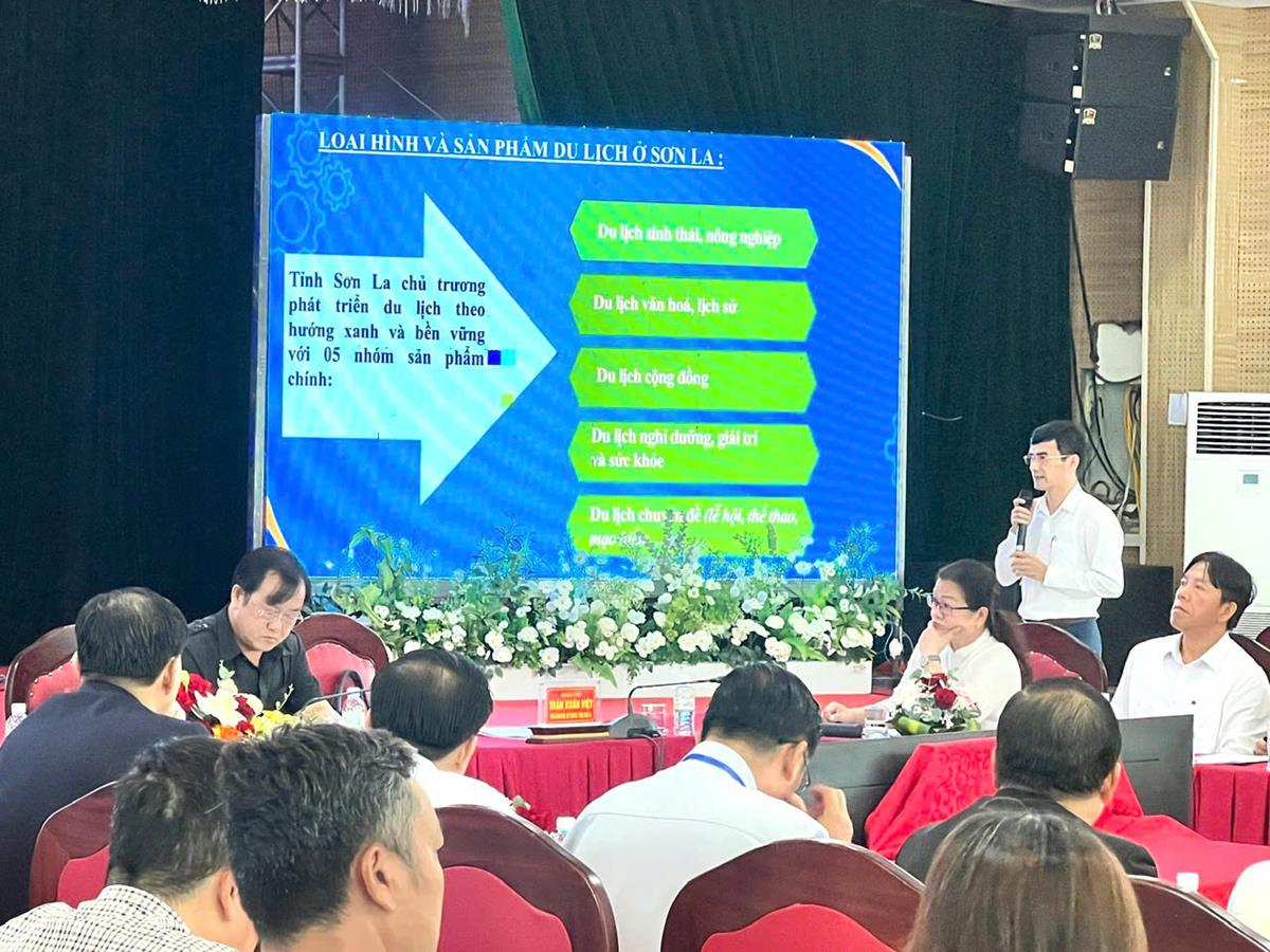 Đại diện Sở VHTTDL tỉnh Sơn La trình bày tham luận“Kinh nghiệm và giải pháp đẩy mạnh phát triển sản phẩm du lịch xanh, du lịch bền vững tại Sơn La và đề xuất với các tỉnh Tây Bắc mở rộng”.