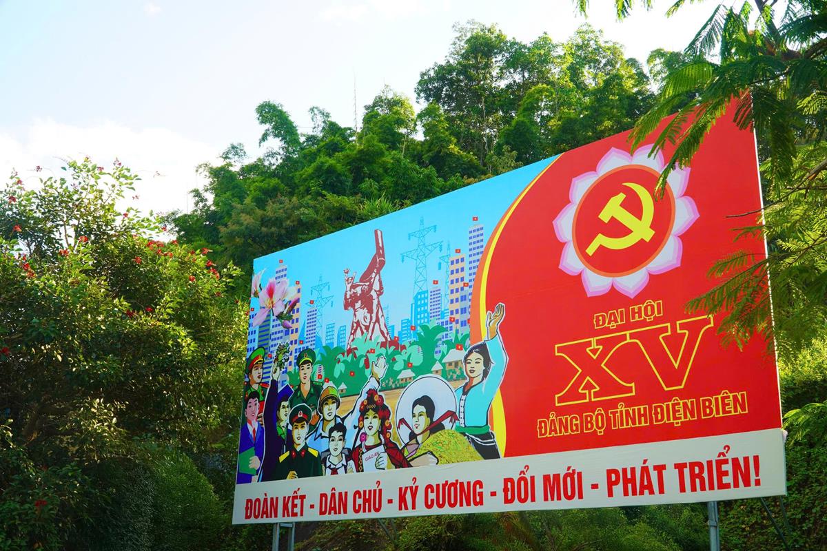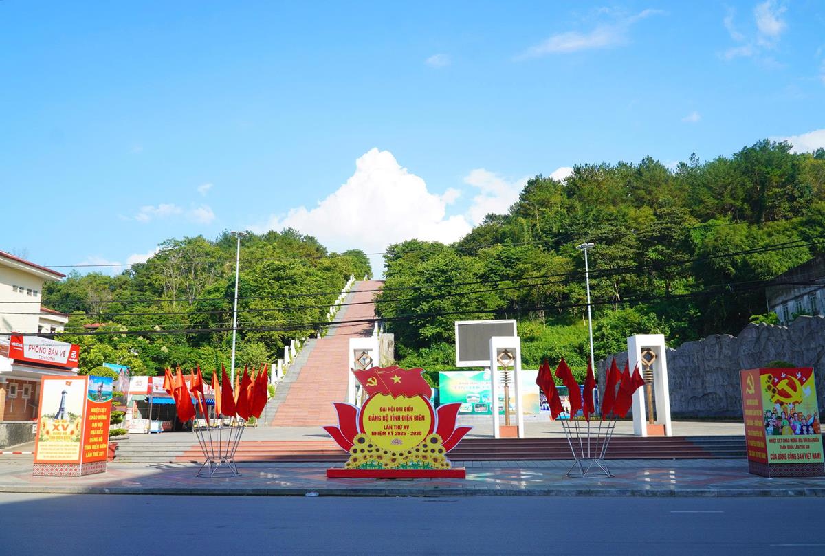 Có thể dễ dàng nhận thấy những ngày này, trên khắp các nẻo đường, khu dân cư, trụ sở cơ quan, trường học, trung tâm hành chính… của tỉnh Điện Biên rực rỡ sắc đỏ của cờ hoa, khẩu hiệu, pa-nô, áp phích tuyên truyền trực quan chào mừng Đại hội đại biểu Đảng bộ tỉnh lần thứ XV, nhiệm kỳ 2025 - 2030.