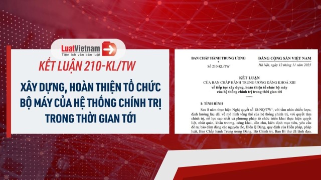 Ngày 12/11/2025 Ban Chấp hành Trung ương đã ban hành Kết luận 210-KL/TW năm 2025 về tiếp tục xây dựng, hoàn thiện tổ chức bộ máy của hệ thống chính trị trong thời gian tới.