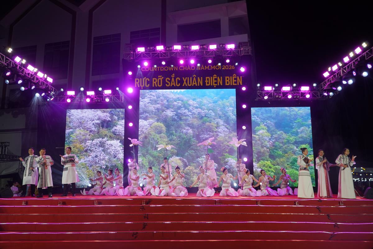 Tối 31/12, tại Phố đi bộ Mường Thanh (phường Điện Biên Phủ), Sở Văn hóa, Thể thao và Du lịch tổ chức chương trình nghệ thuật Countdown chào đón năm mới 2026. Tham dự chương trình có đồng chí Lê Thành Đô - Phó Bí thư Thường trực Tỉnh ủy, Chủ tịch HĐND tỉnh; đồng chí Nguyễn Minh Phú - Phó Chủ tịch UBND tỉnh; đại diện lãnh đạo các sở, ban, ngành cùng đông đảo nhân dân và du khách.