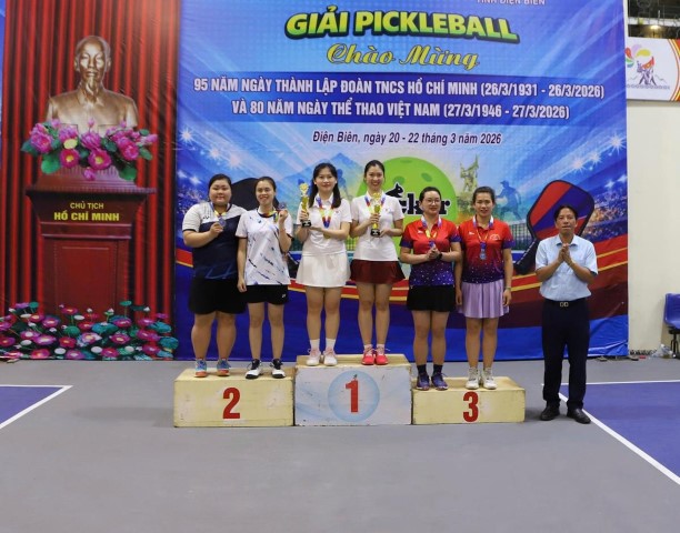 Chiều ngày 23/3/2026, tại Nhà tập luyện TDTT – Trung tâm Huấn luyện và Thi đấu TDTT tỉnh Điện Biên, Sở Văn hóa, Thể thao và Du lịch phối hợp với Tỉnh đoàn Điện Biên tổ chức bế mạc và trao thưởng Giải Pickleball chào mừng kỷ niệm 95 năm Ngày thành lập Đoàn TNCS Hồ Chí Minh (26/3/1931 – 26/3/2026) và 80 năm Ngày Thể thao Việt Nam (27/3/1946 – 27/3/2026).